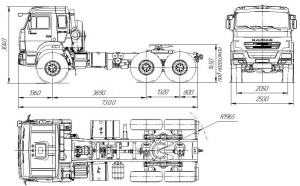 Шасси 6*4, длина рамы 5 970 мм, межосевое растояние мм, грузоподъемность 12 тонн